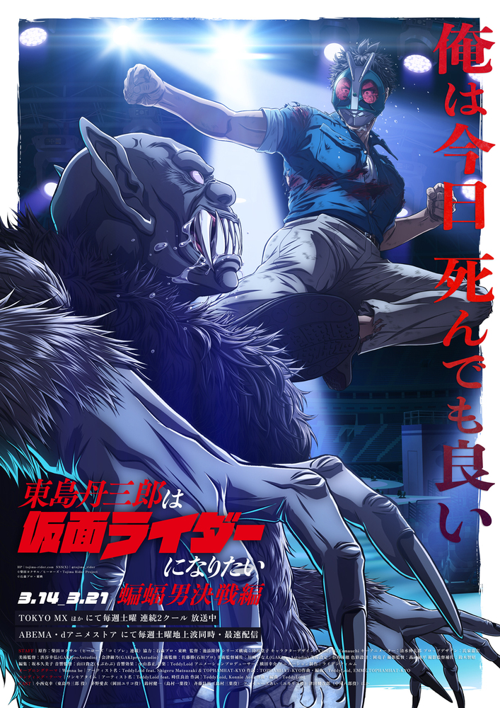 本日第22話の放送を終え、いよいよ残り2話の放送!物語は宿敵、蝙蝠男との闘いへ!3月14日(土)放送の第23話、そして3月21日(土)放送の第24話は、“蝙蝠男決戦編”と題し、東島丹三郎達と、蝙蝠男&ショッカー戦闘員たちとの迫力のバトルへ突入します。最終回の地、TOKYO CENTRAL DOMEで東島丹三郎達はどのようにして敵に立ち向かうのか。残り2話の物語の展開に、ぜひご期待ください。