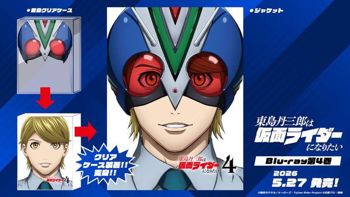 Blu-ray&DVDの、第4巻ジャケットが公開となりました。第4巻の表紙は、メインキャラクターの島村三葉が描かれており、“変身”クリアケース仕様にて、ライダーマンのマスクが描かれた透明のケースを、デジジャケットに装着することで、ライダーマンに変身できる仕組みです!